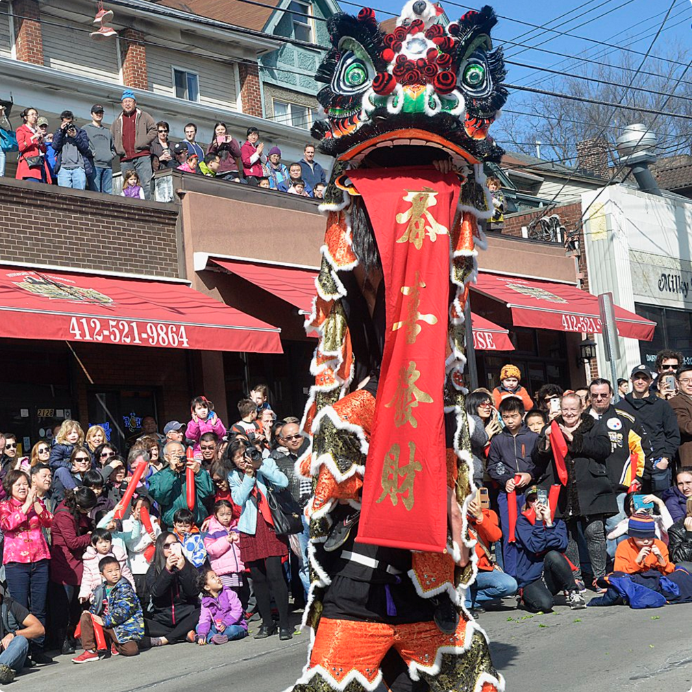 Together with over a dozen local partners, we hosted Pittsburgh's FIRST Chinese new year parade in the heart of its most socio-economically diverse neighborhood. With thirty-one Asian owned businesses, Squirrel Hill is the center of an important and growing community. A 21st Century Chinatown. Worlds collided in beautiful new ways, as a parade of 300 people and 20+ Asian organizations, including many dragons, drums, and dumplings, celebrated on a six block stretch of historic Murray Avenue.